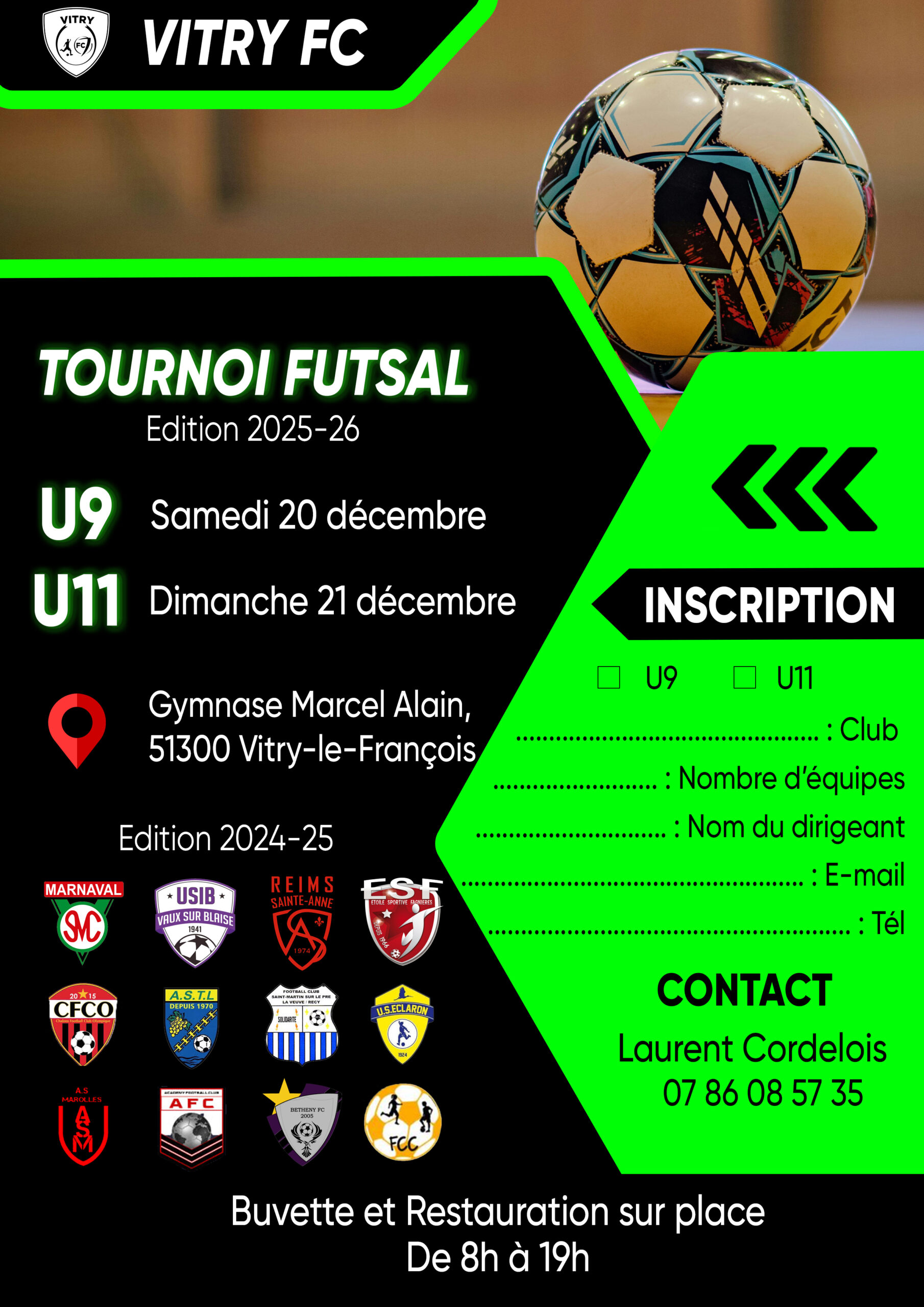 Le Vitry FC organise les 20 et 21 décembre 2025 des tournois régionaux dédié aux catégories U9/U11. Cet événement rassemblera 16 équipes dans une ambiance conviviale et sportive.